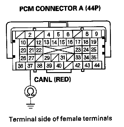 36. Check for continuity between PCM connector terminal A37 and body ground.