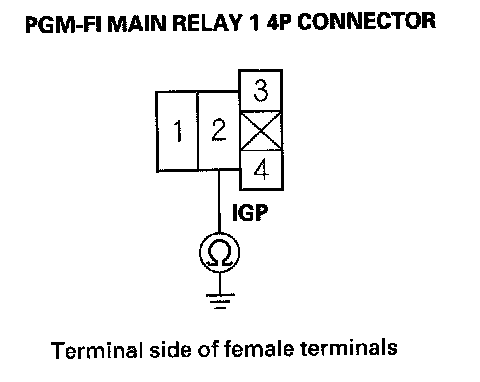 61. Measure voltage between PGM-FI main relay 1 4P connector terminal No. 3 and body ground.