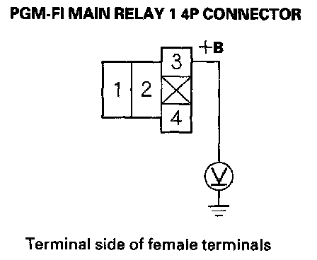 65. Measure voltage between PGM-FI main relay 1 4P connector terminal No. 1 and body ground.