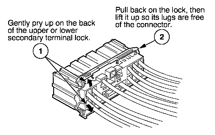 - If it has a secondary terminal lock, go to Connectors With a Secondary Lock. A secondary lock, found on most connectors on some models, is an additional locking device on the connector housing as a backup for the primary lock on the terminal.
