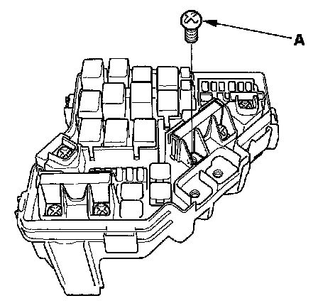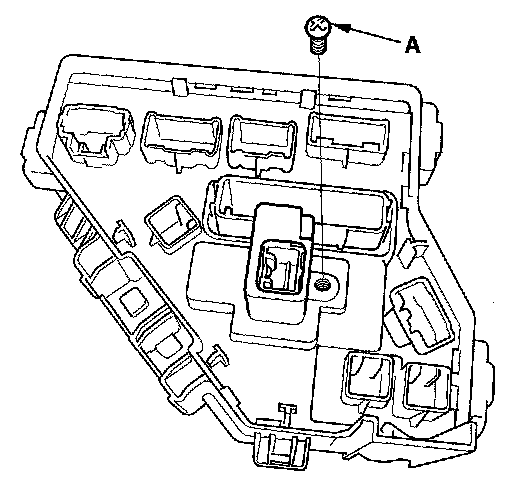 4. Turn the housing over again. Using two flat-tip screwdrivers, release the tabs (A), and pry up the fuse/relay box base (B) from the fuse/relay box housing (C).