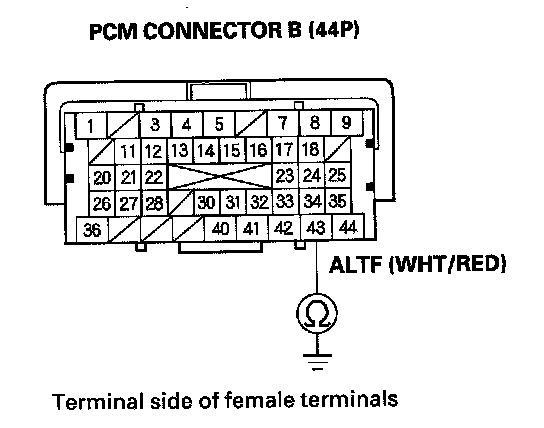 8. Check for continuity between body ground and PCM connector terminal B43.