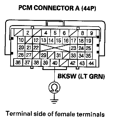 8. Check for continuity between PCM connector terminal A40 and body ground.