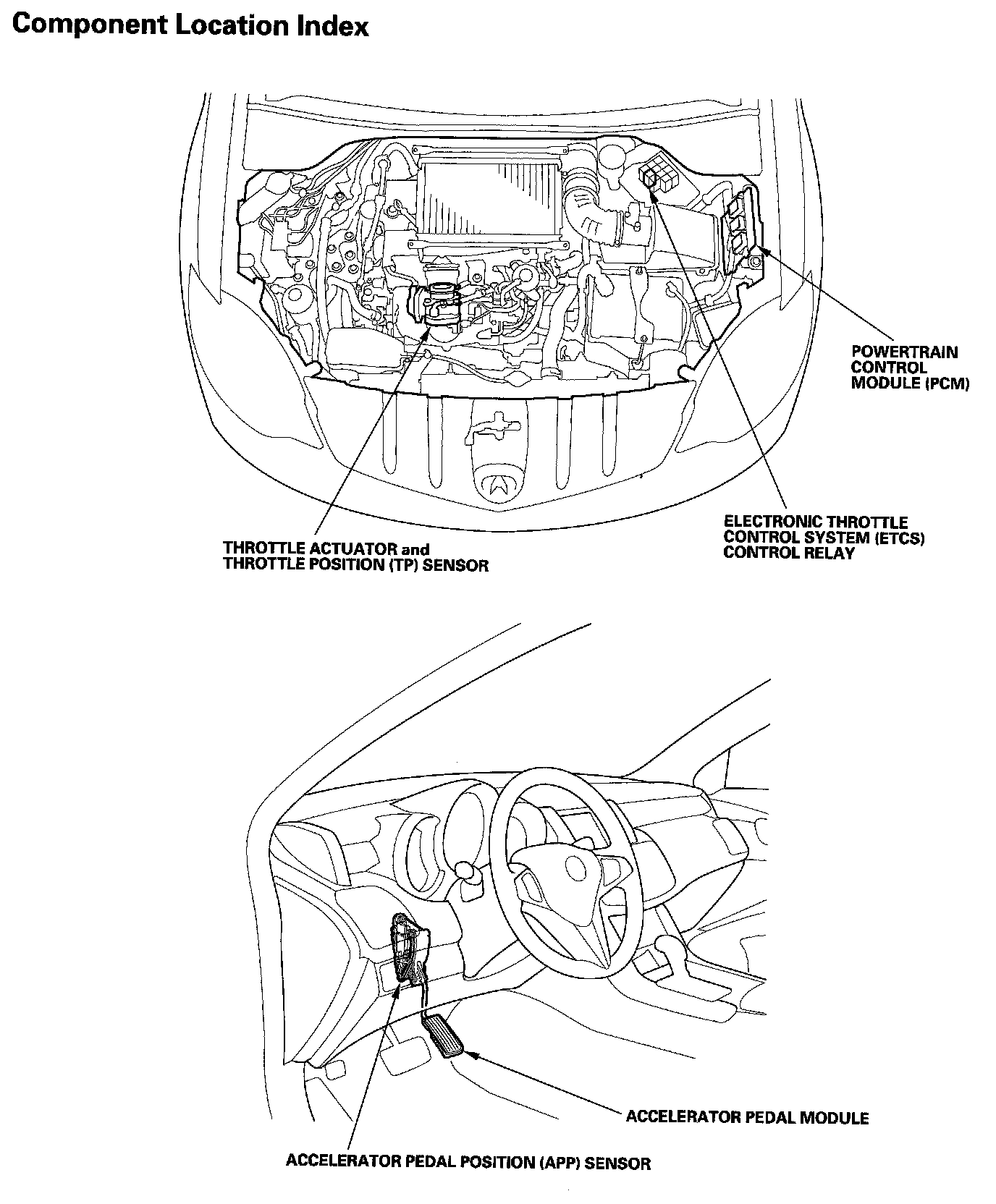 Electronic Throttle Control System Component Location Index: