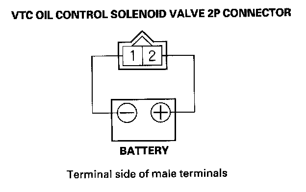 5. Connect the battery positive terminal to VTC oil control solenoid valve 2P connector terminal No. 2.