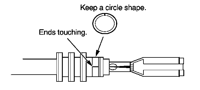 3. Strip the insulation off the end of the wire so the wire fits in the new terminal as shown. (If the wire has a wire seal, replace it with a new one from the kit.)