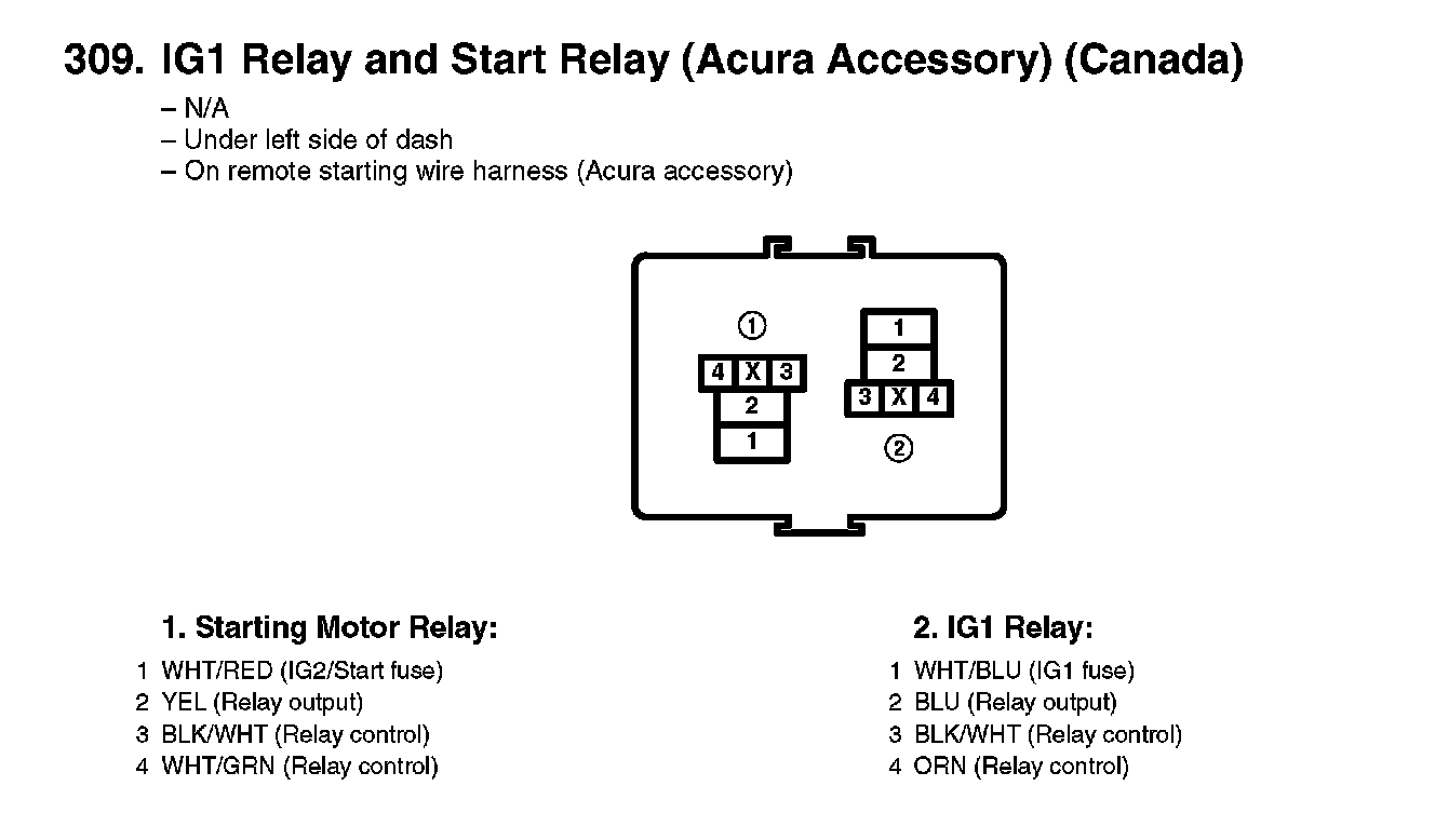 309. IG1 Relay And Start Relay (Acura Accessory) (Canada):
