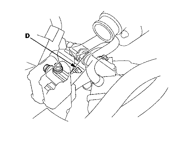 15. Upshift to 2nd gear by pulling the paddle shifter + (upshift switch), and measure the 2nd clutch pressure at the 2nd clutch pressure inspection port (D) while holding the engine speed at 2,000 rpm.