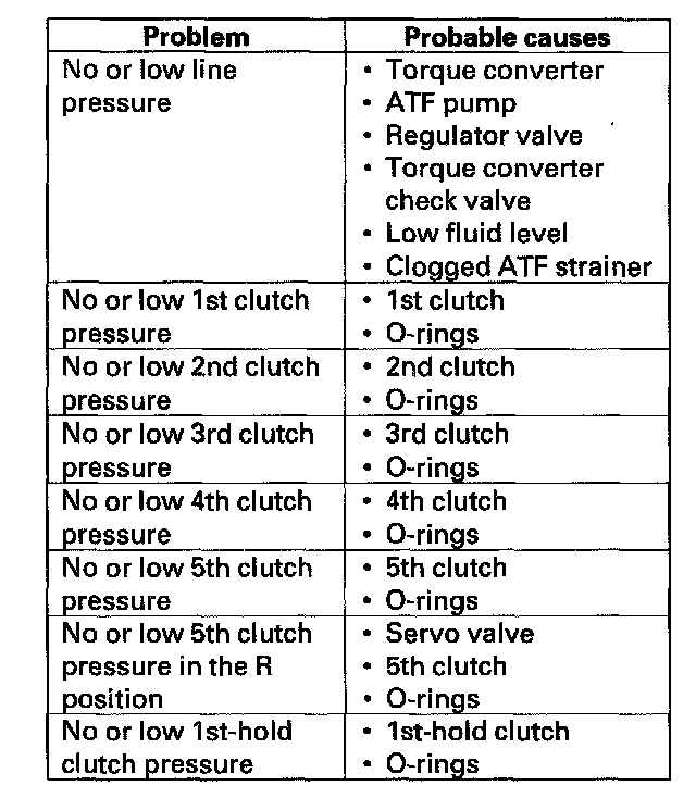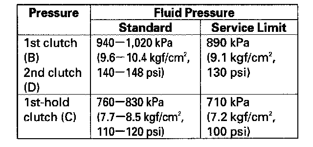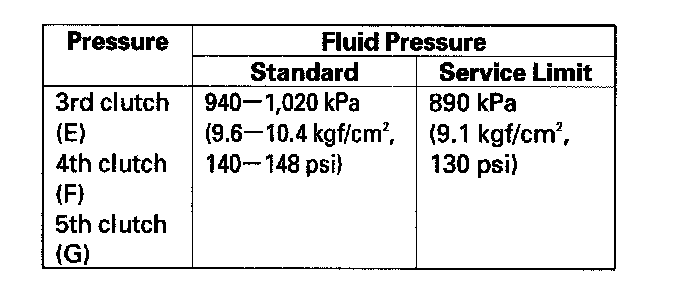 ^ A/T clutch pressure gauge set 07406-0020400 or 07406-0020401