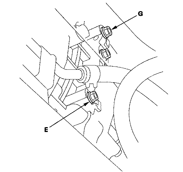 19. Connect the oil pressure gauge to the 3rd clutch pressure inspection port (E) and the 5th clutch pressure inspection port (G).