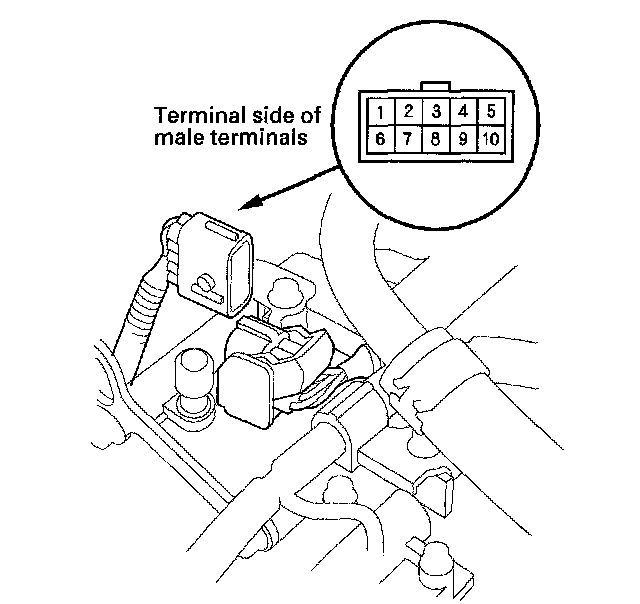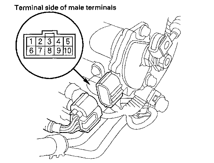 6. Check for continuity between terminals at the harness connector. There should be continuity between the terminals indicated in the following table for each switch position.