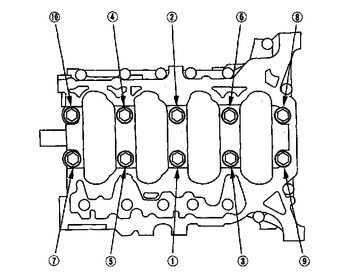 Tighten the bearing cap bolts, in sequence 29 N-m (3.0 kgf-m, 22 lbf-ft)