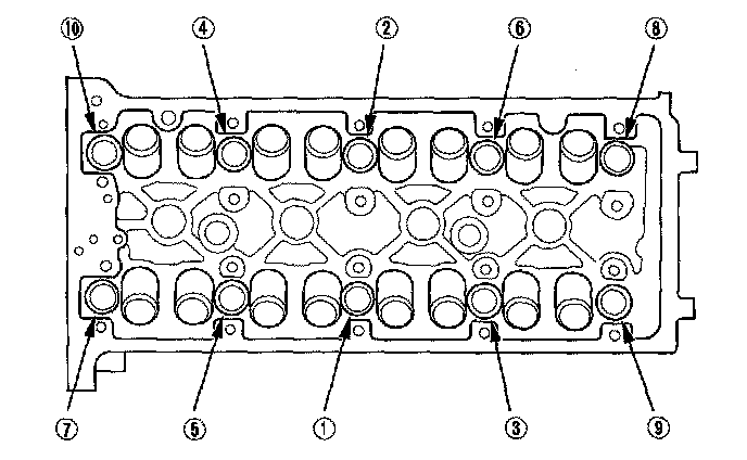 Tighten the cylinder head bolts in sequence to 39 N-m (4.0 kgf-m, 29 lbf-ft).