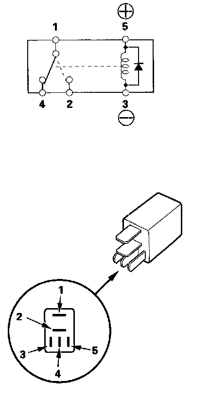 - There should be continuity between the No.1 and No.2 terminals when battery positive terminal is connected to the No.5 terminal, and battery negative terminal is connected to the No. :3 terminal.