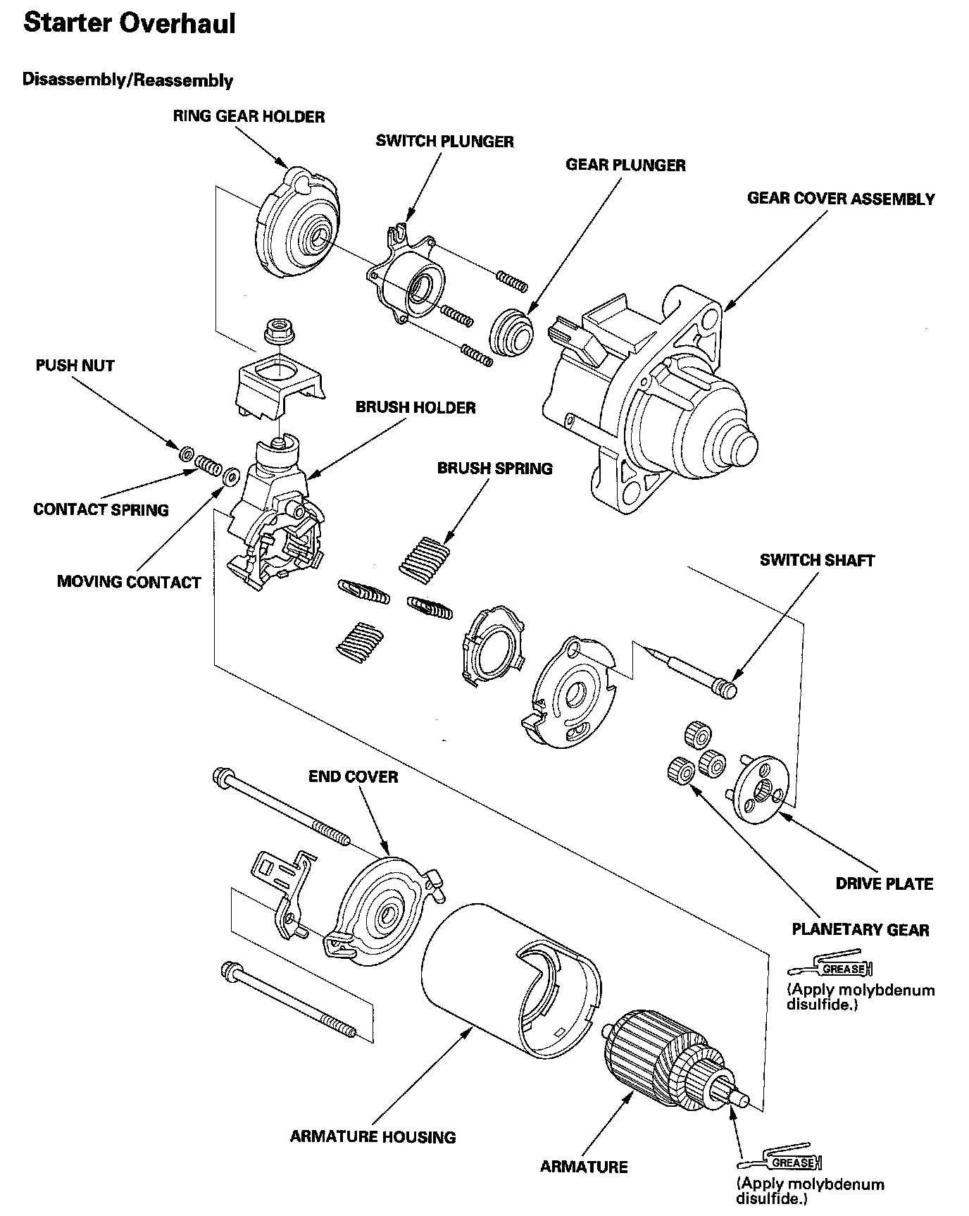 2. Disassemble the starter as shown at the beginning of this procedure.