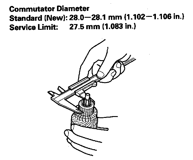 5. Check the commutator diameter. If the diameter is below the service limit, replace the armature.