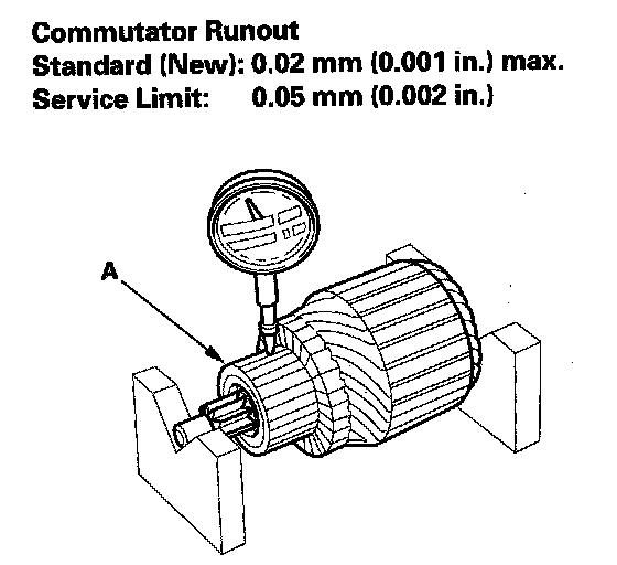 - If the commutator runout is within the service limit, check the commutator for carbon dust or brass chips between the segments.