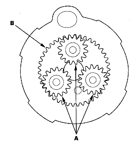 13. Check the planetary gears (A) and ring gear (B). Replace them if they are worn or damaged.