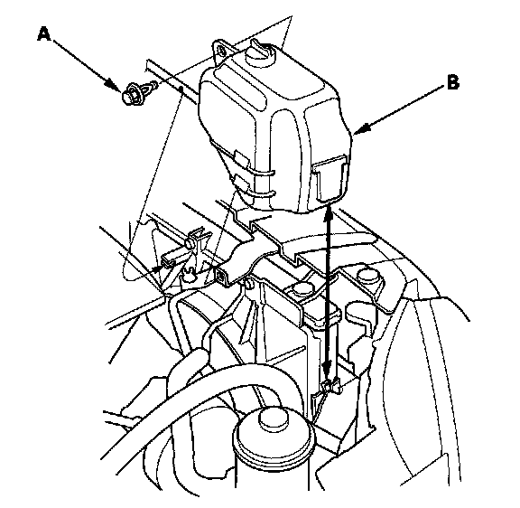 3. Remove the clip (A), then remove the coolant reservoir (B) from the holder.