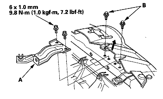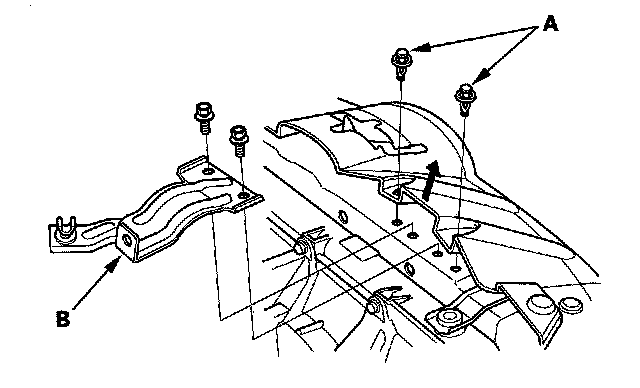 4. Remove the clips (A), then remove the support rod clamp bracket (B).