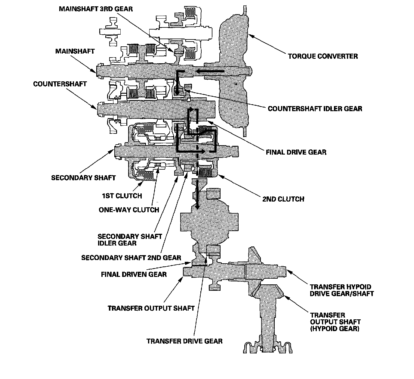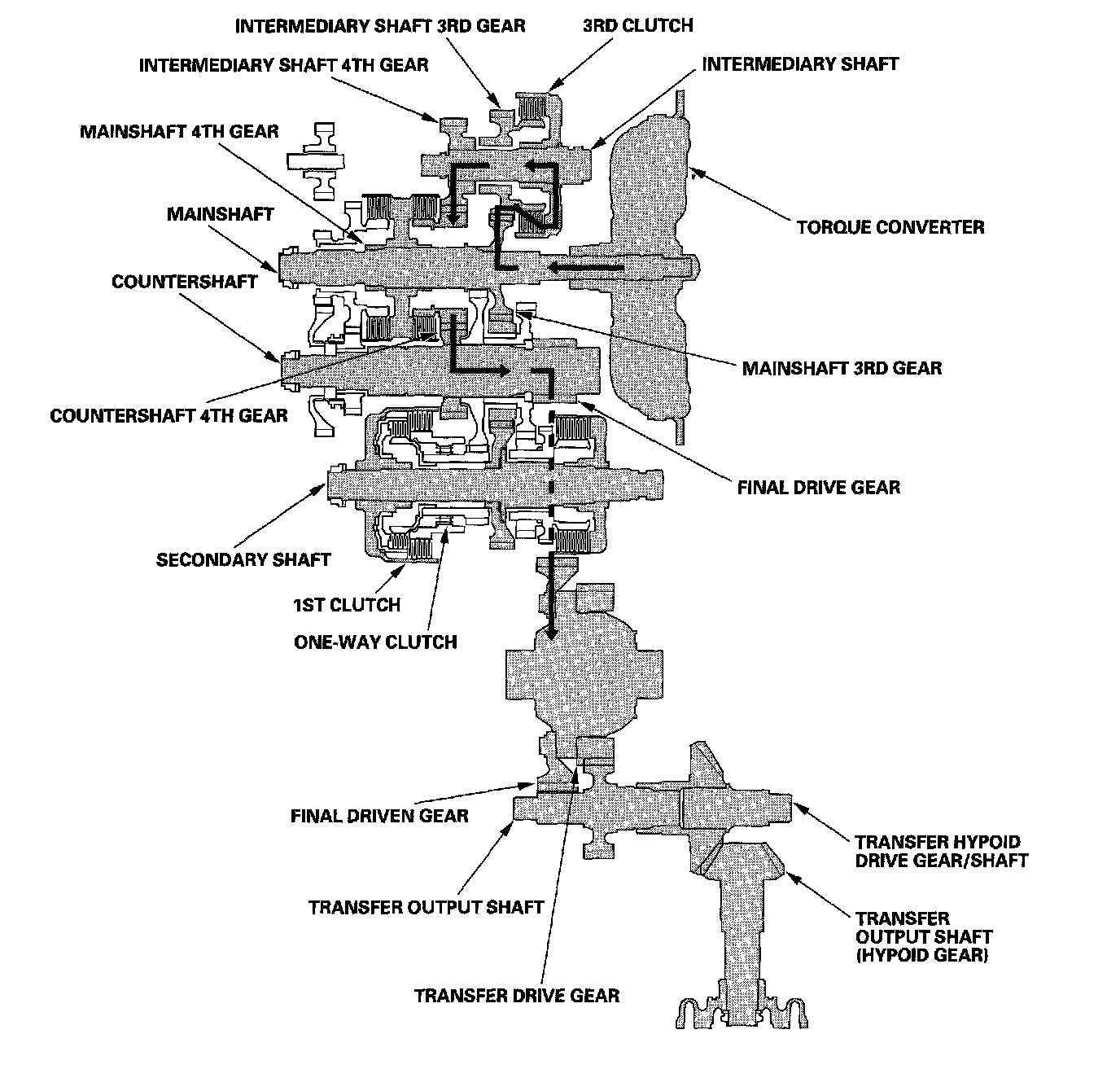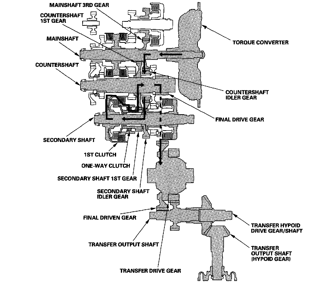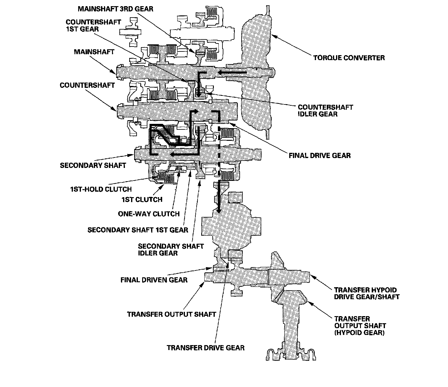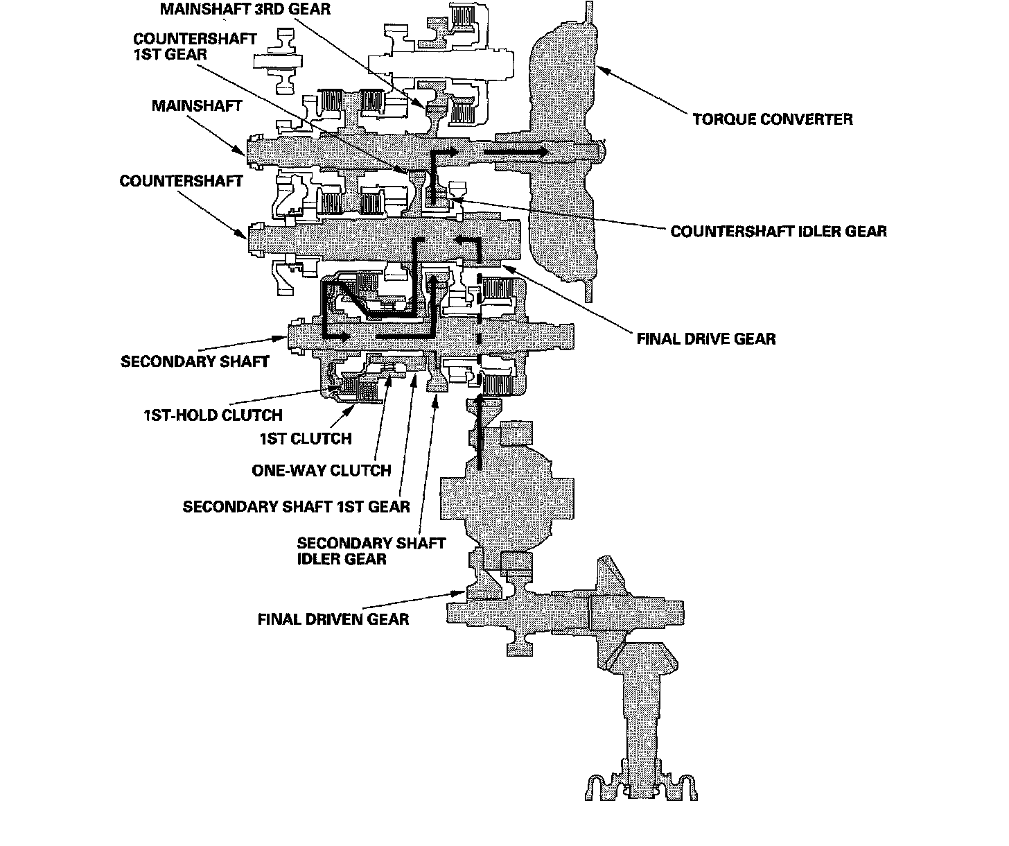 ^ Hydraulic pressure is also applied to the 1st-hold clutch, and the 1st-hold clutch engages the secondary shaft 1st gear with the secondary shaft.