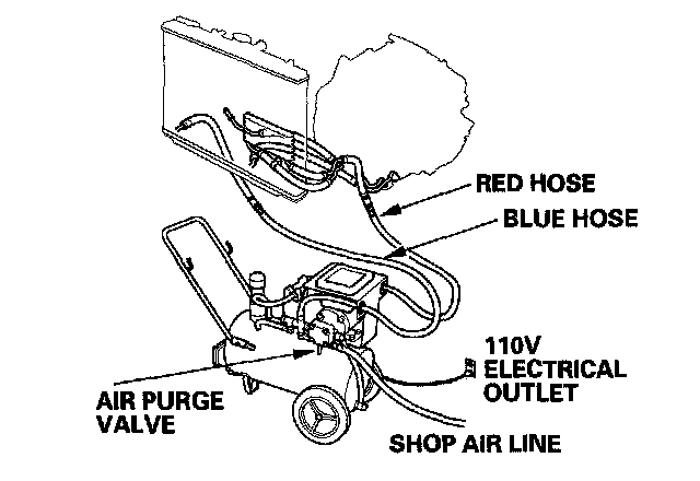 7. Connect a shop air hose (regulated to 100 to 125 psi) to the air purge valve.