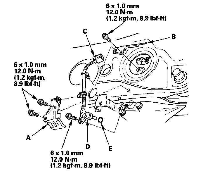 4. Install the differential fluid temperature sensor with a new O-ring (E) in the reverse order of removal.