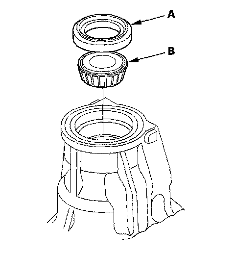 11. Remove the oil seal (A) and tapered roller bearing (B) from the transfer housing.