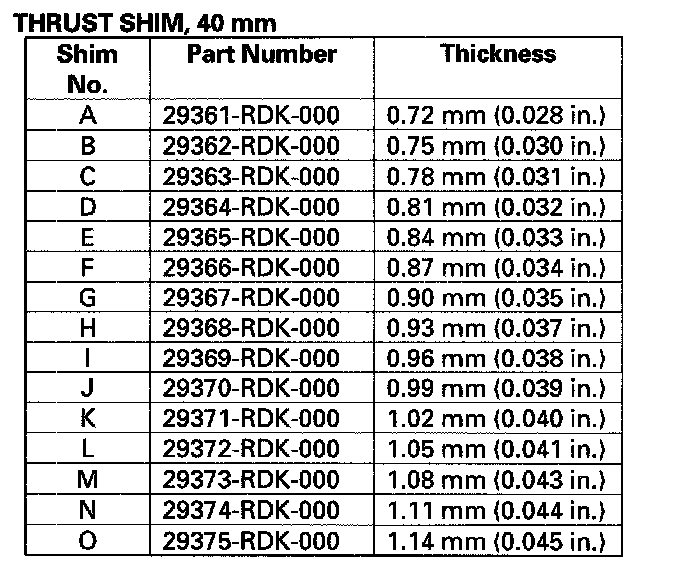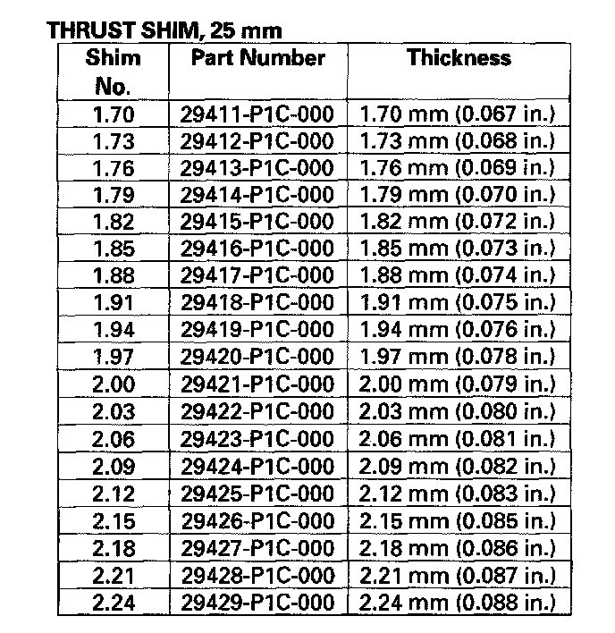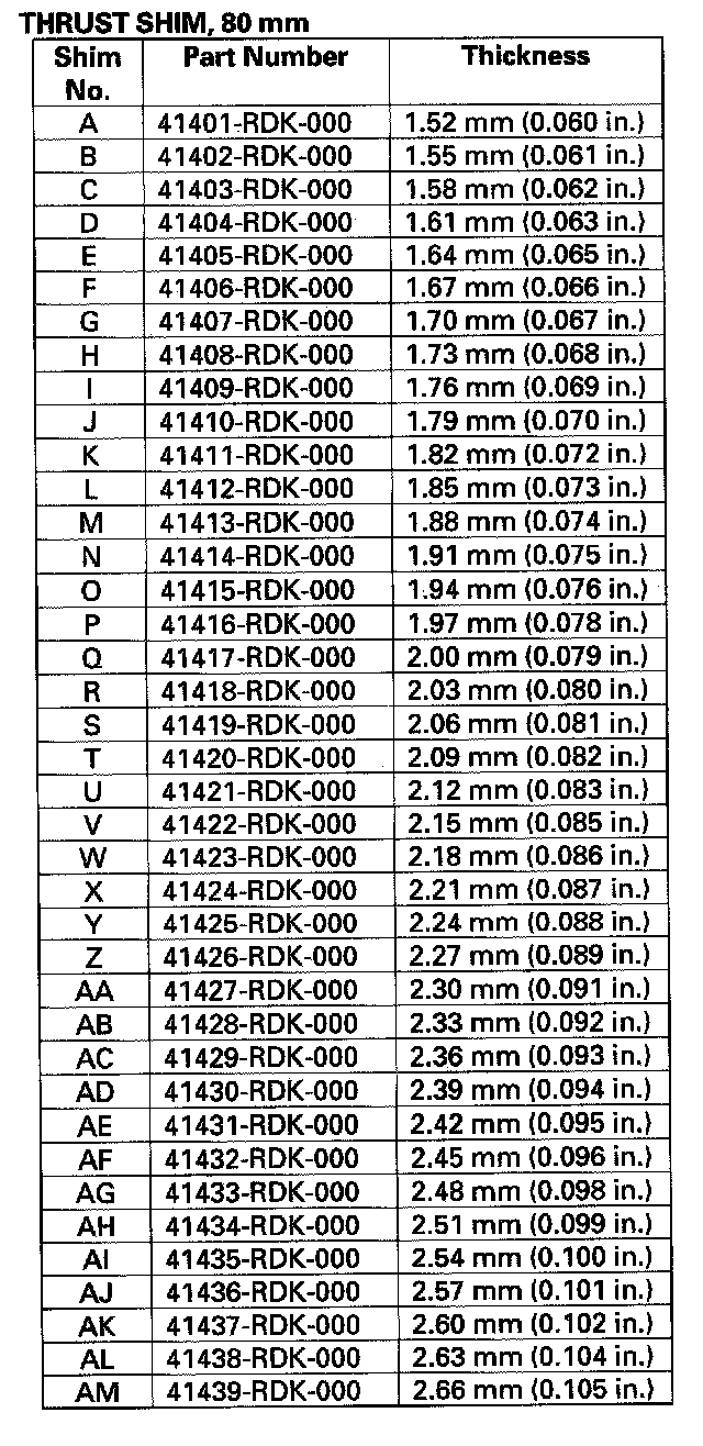 * Reduce the thickness of the 80 mm thrust shim by the amount of increase thickness of the 25 mm thrust shim.