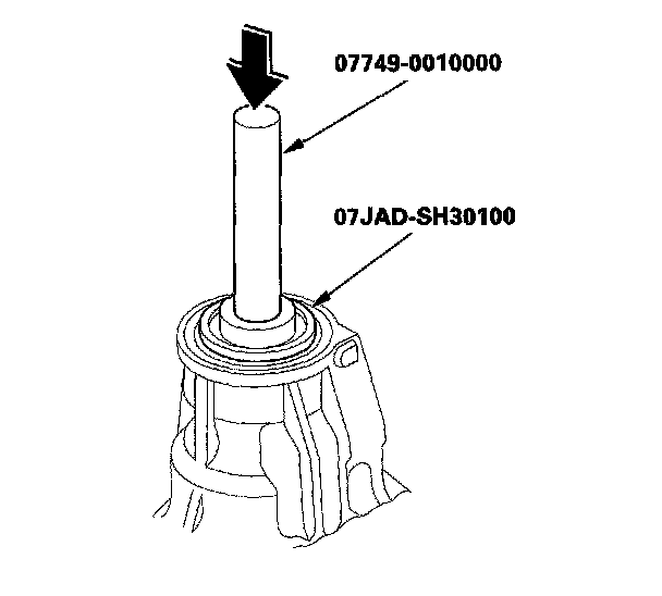 5. Install the new oil seal on the transfer housing using the driver, the attachment (65 mm), and the press.