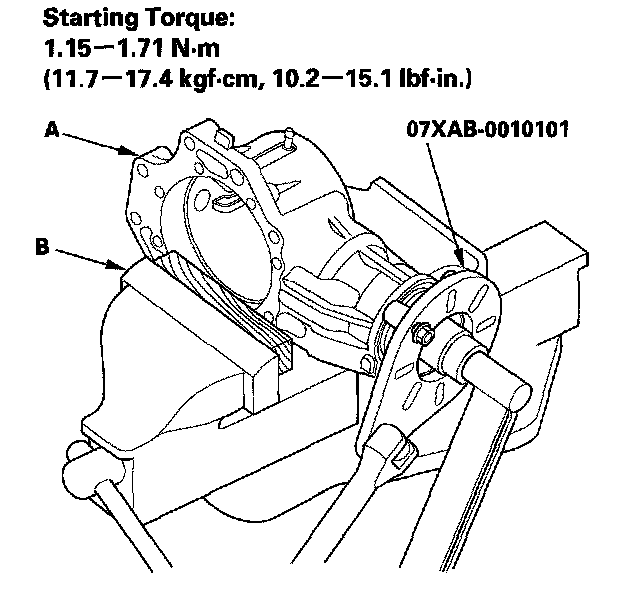 ^ Rotate the companion flange several times to seat the tapered roller bearings, then measure the starting torque.