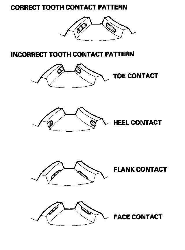 Flank contact must be adjusted within the limits of the transfer gear backlash. If the backlash exceeds the limits, adjust as described under Heel Contact.