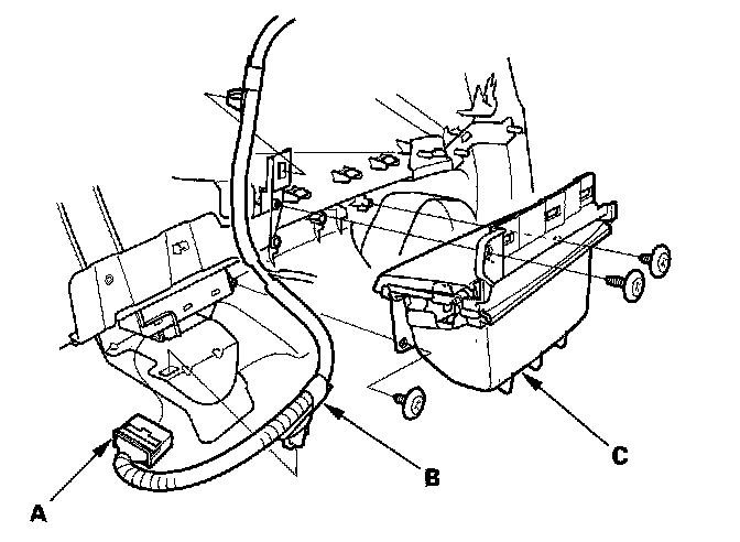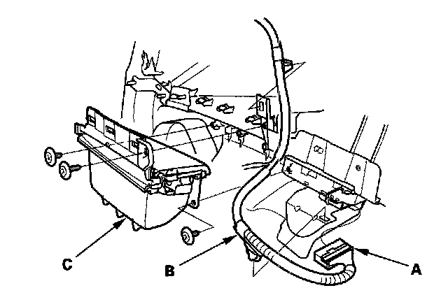 4. Remove the three screws from the door panel, then pull up on the door pocket (C) to release the clips.