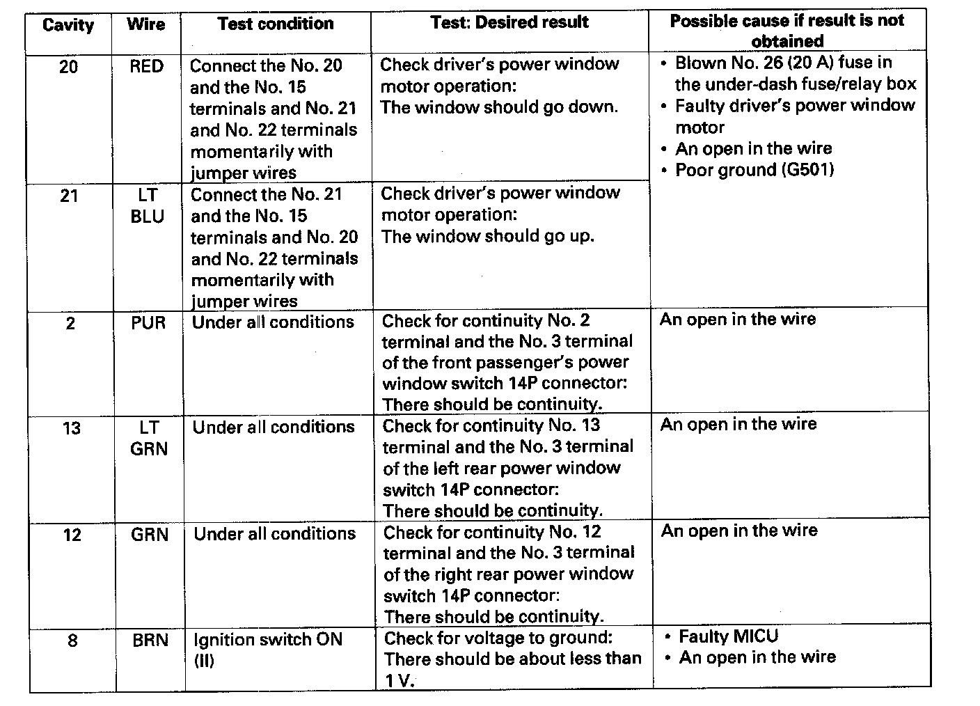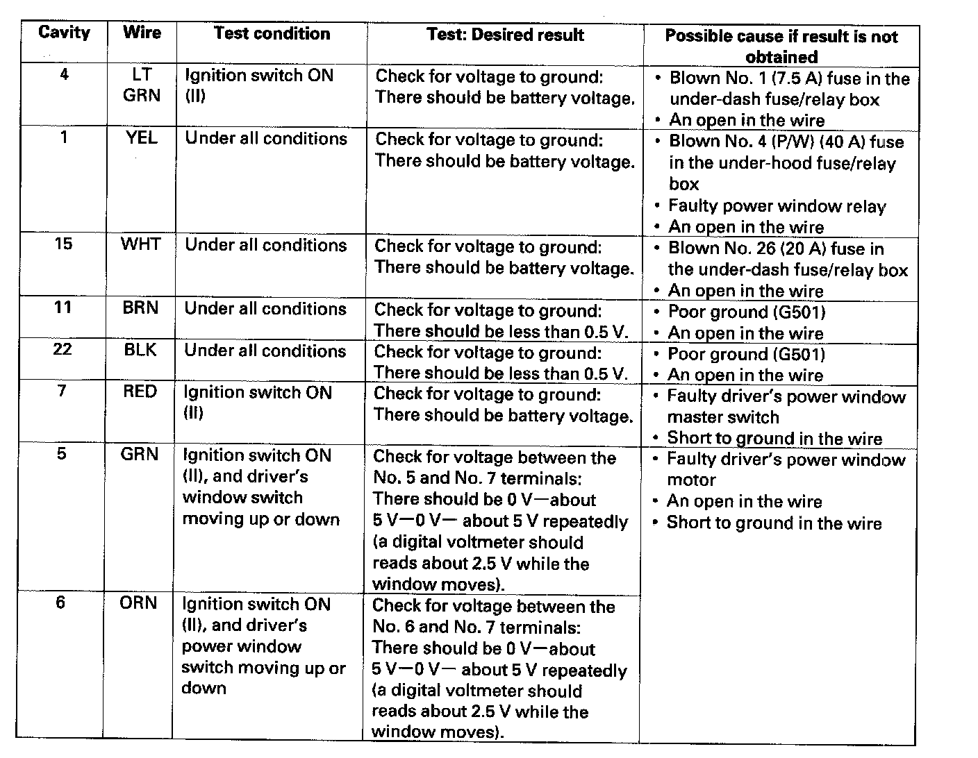 Master Switch Input TestNOTE: The power window control unit is built into the power window master switch.