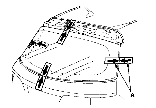 2. Remove the lower rubber dam (A) from the edge of the rear window. If necessary, cut the rubber dam with a utility knife.