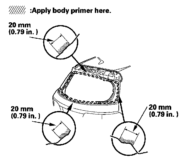 - Never touch the primed surfaces with your hands. If you do, the adhesive may not bond to the rear window properly, causing a leak after the rear window is installed.