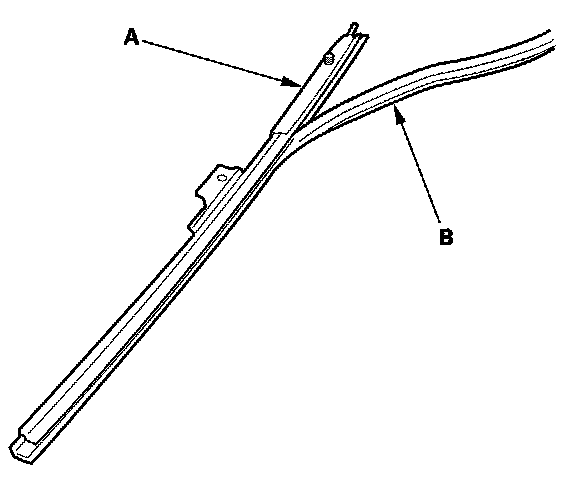 8. Remove the rear lower channel (A) from the glass channel (B).