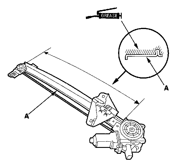 12. Apply multipurpose grease to all the sliding surfaces of the regulator (A) where shown.