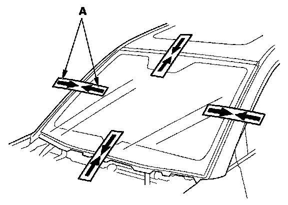 3. If the old windshield will be reinstalled, make alignment marks (A) across the glass and body with a grease pencil.