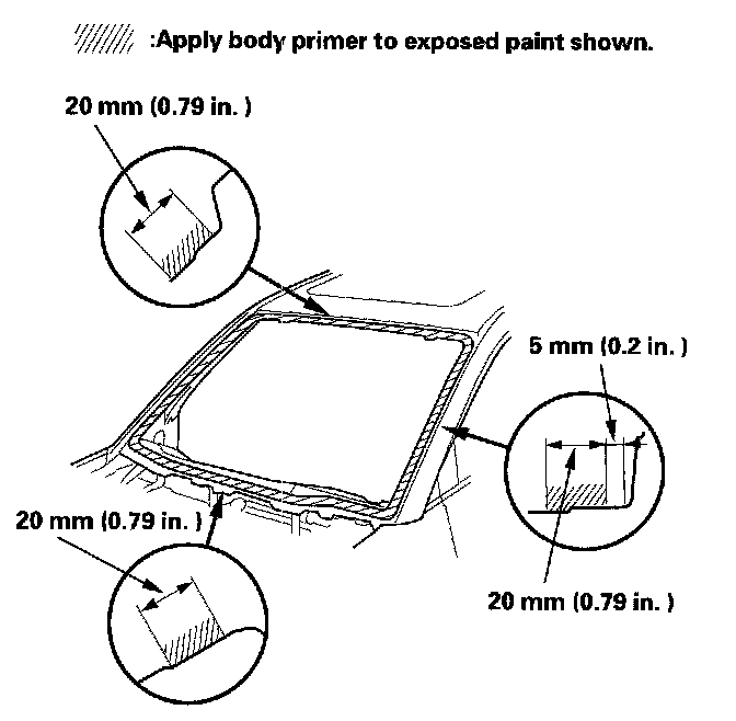 - Never touch the primed surfaces with your hands. If you do, the adhesive may not bond to the windshield properly, causing a leak after the windshield is installed.