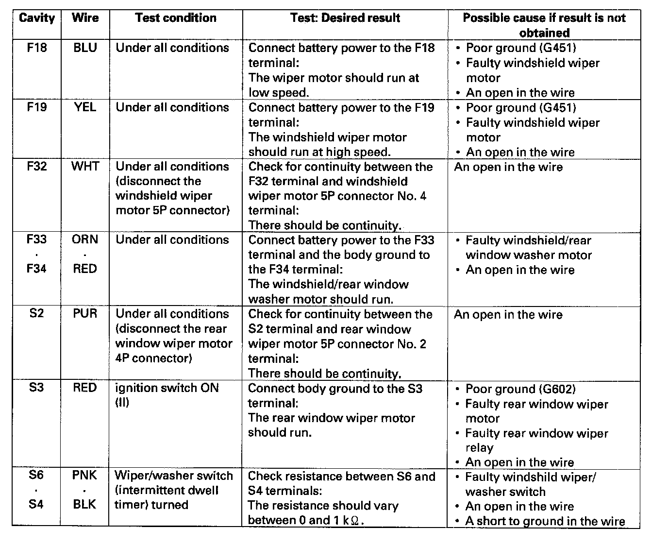 MICU Input Test1. Before troubleshooting the wiper/washer system, troubleshoot the B-CAN System Diagnosis Test Mode A, and check the No. 8(10 A), No. 10 (7.5 A) and No. 38 (30 A) fuses in the under-dash fuse/relay box.
