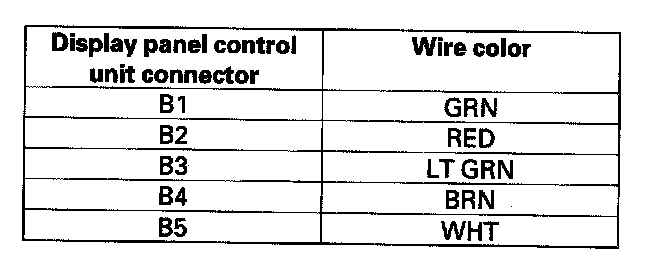 6. Check for continuity between the display panel control unit connector B (5P) and body ground according to the table.