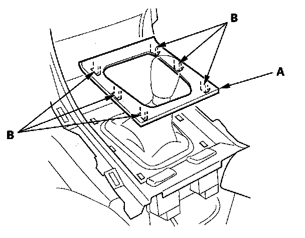9. Remove the screws (A) from the back of the console panel, then remove the panel (B) from the console pocket assembly.