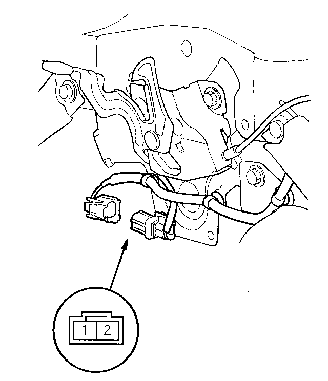 4. Check for continuity between the terminals. There should be continuity between the No. 1 and No. 2 terminals when the hood is opened (latch released). There should be no continuity between the No. 1 and No. 2 terminals when the hood is closed (latch pushed down).