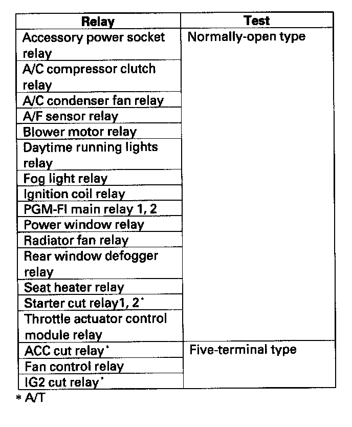Power Relay TestUse this chart to identify the type of relay, then do the test listed for it.