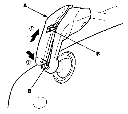 6. Install the wire cover (A) in the sequence shown. Take care not to damage the hooks (B).