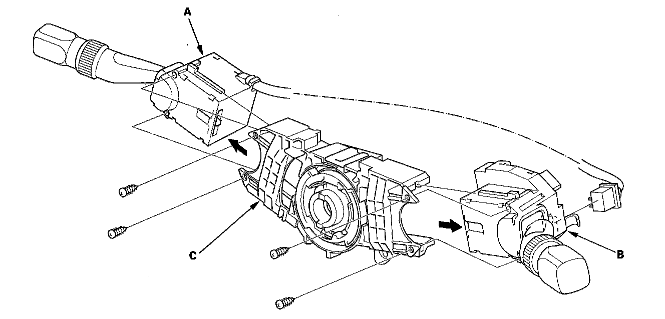 4. Remove the combination light switch (A) and the wiper/washer switch (B).