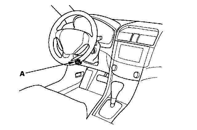 2. With the ignition switch OFF, connect the HDS to the data link connector (DLC) (A) under the driver's side of the dashboard.