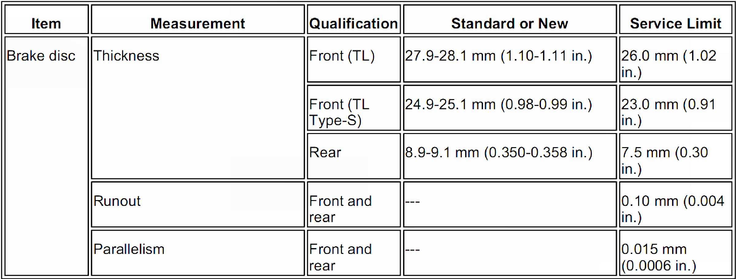 Brake Disc Specifications
