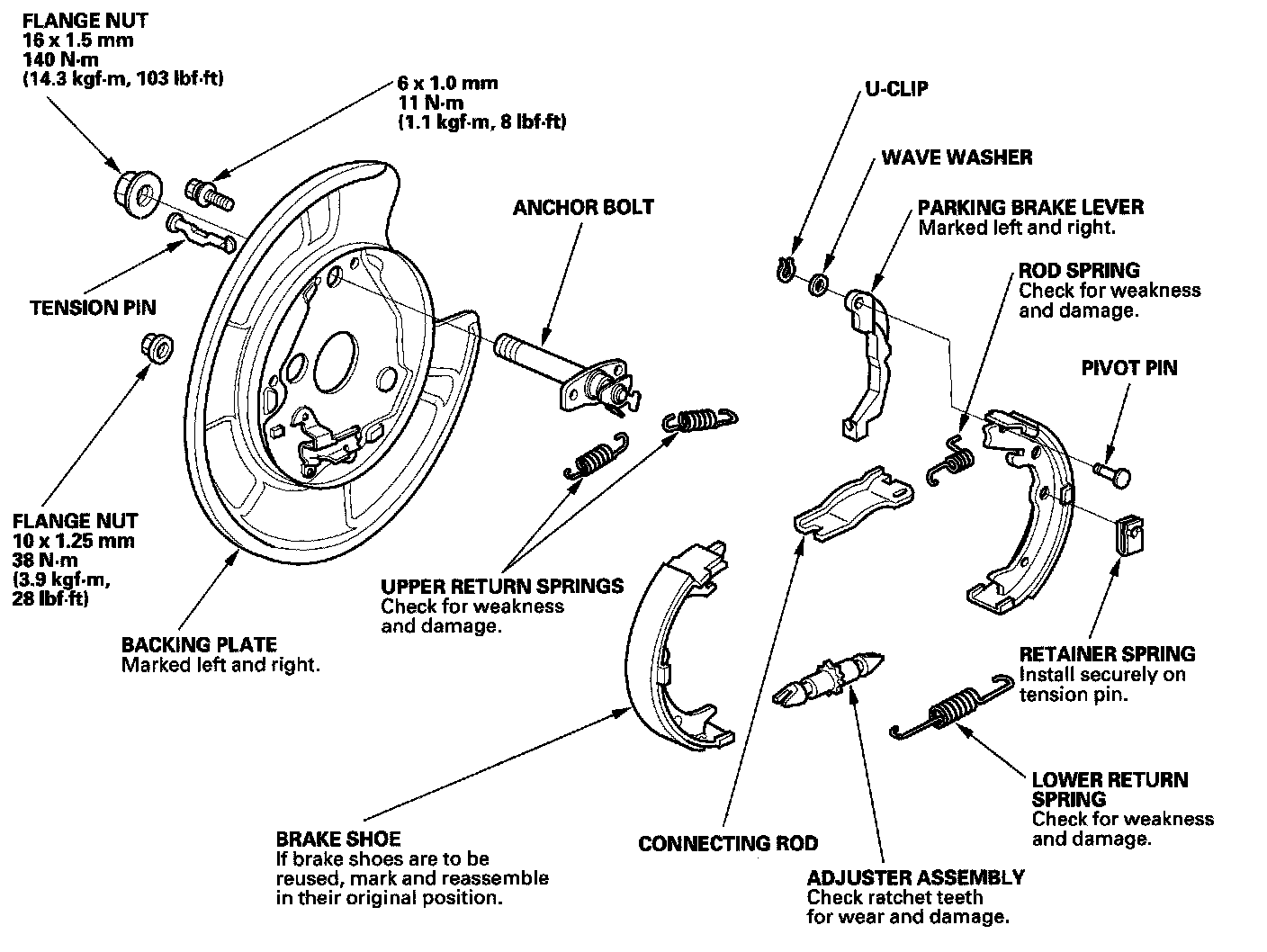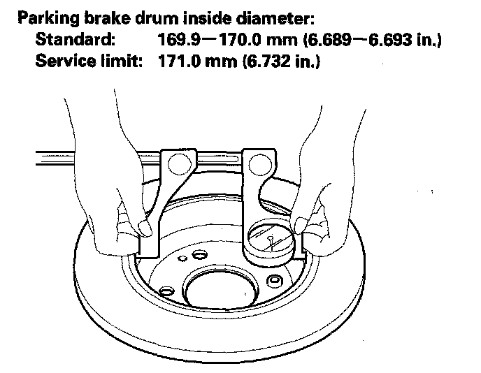 9. If the inside diameter of the parking brake disc/drum is more than service limit, replace the brake disc/drum.